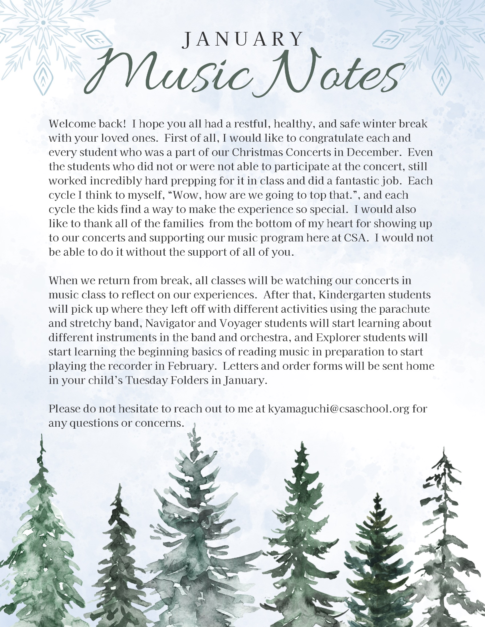 CSA CLASSROOM NEWSLETTERS >