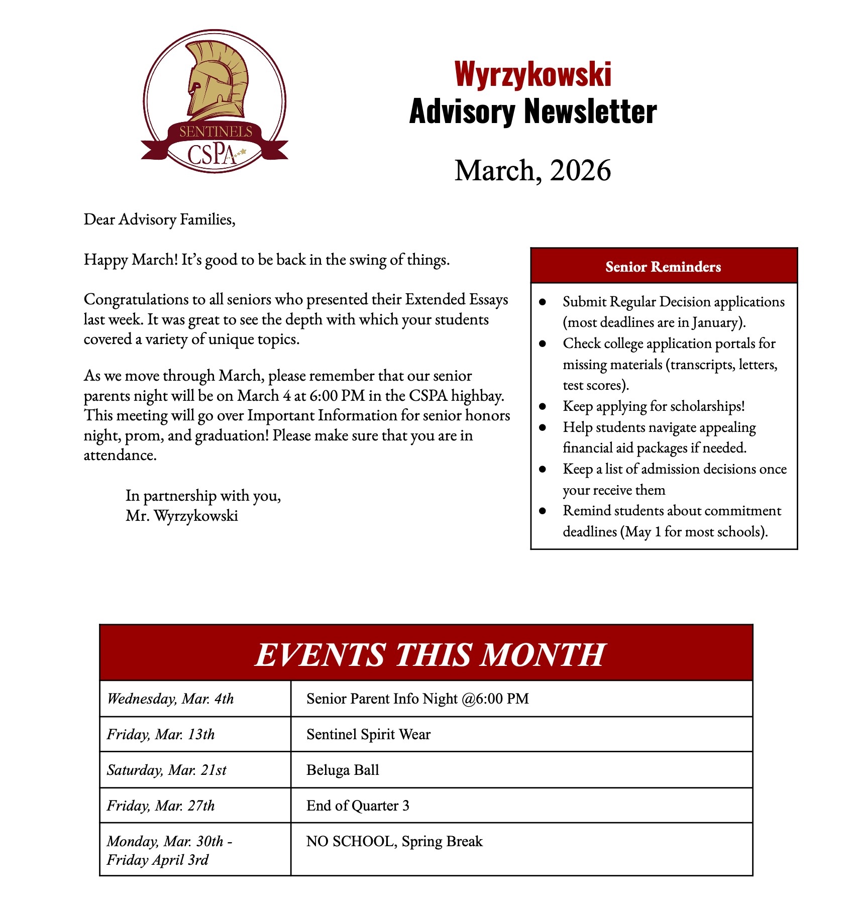 CSPA HS ADVISORY NEWSLETTERS >